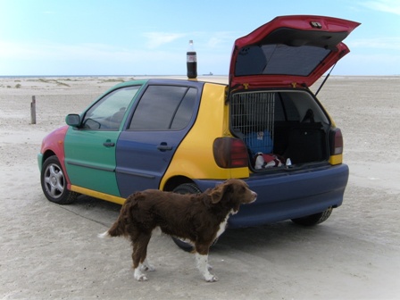 Ein Braunschweiger Harlekin am Strand von Fanoe und in Braunschweig. Vielen Dank Anne für das wunderschöne Foto und vor allem für deine E-Mail's aufgrund meiner Einladungskarte zur Harlekinade an deinem Auto.