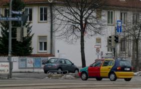 Ein schon bekannter Harlekin aus Braunshweig, aus dem Auto, schnell mal das Handy gezückt: