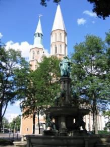 Die Katharinenkirche und davor ist der Heinrich-Brunnen.