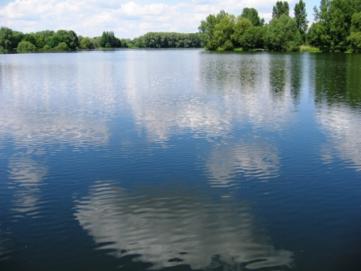 Das ist der Heidbergsee. Hier kann man im Sommer (außer am Triathlon teilnehmen) herrlich faulenzen und auch Schwimmen (kleiner Sandstrand).