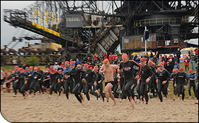 Hier war nun eine Halbdistanz (1,9 - 90 - 21,1) zu bewältigen. Die Veranstaltung fand unter dem Motto "7.000 Tonnen Stahl - und du mittendrin" statt.