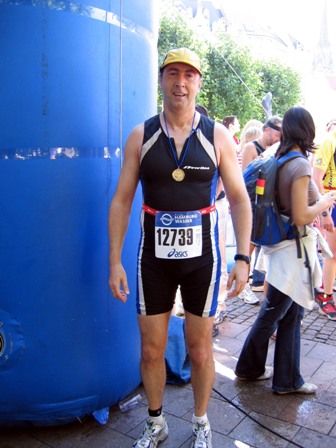 Nach erfolgreichem Zieleinlauf über 900 m Schwimmen, 40 km Radfahren und 10 km Laufen!
