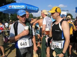 Nach dem Zieleinlauf eine (alkoholfreie) Erfrischung und Erfahrungsaustausch unter Sportlern.